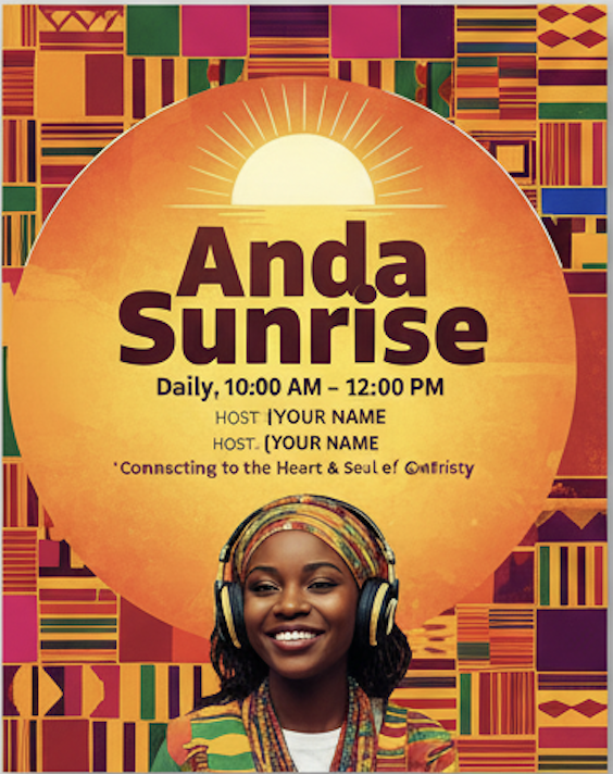 More than just a radio show, Anda Sunrise is a dynamic cultural crossroads. We seamlessly blend the freshest global African music—from the pulsating rhythms of Afrobeats and Amapiano to the soulful sounds of Highlife and traditional folk—with insightful, engaging social commentary.